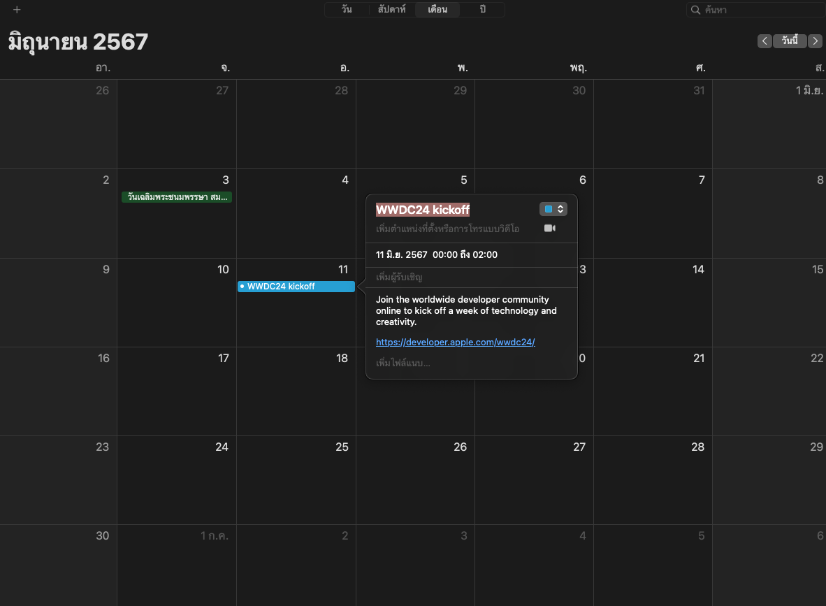WWDC24 จัดขึ้นวันที่ 11 มิ.ย. 2024 เวลาเที่ยงคืนประเทศไทย