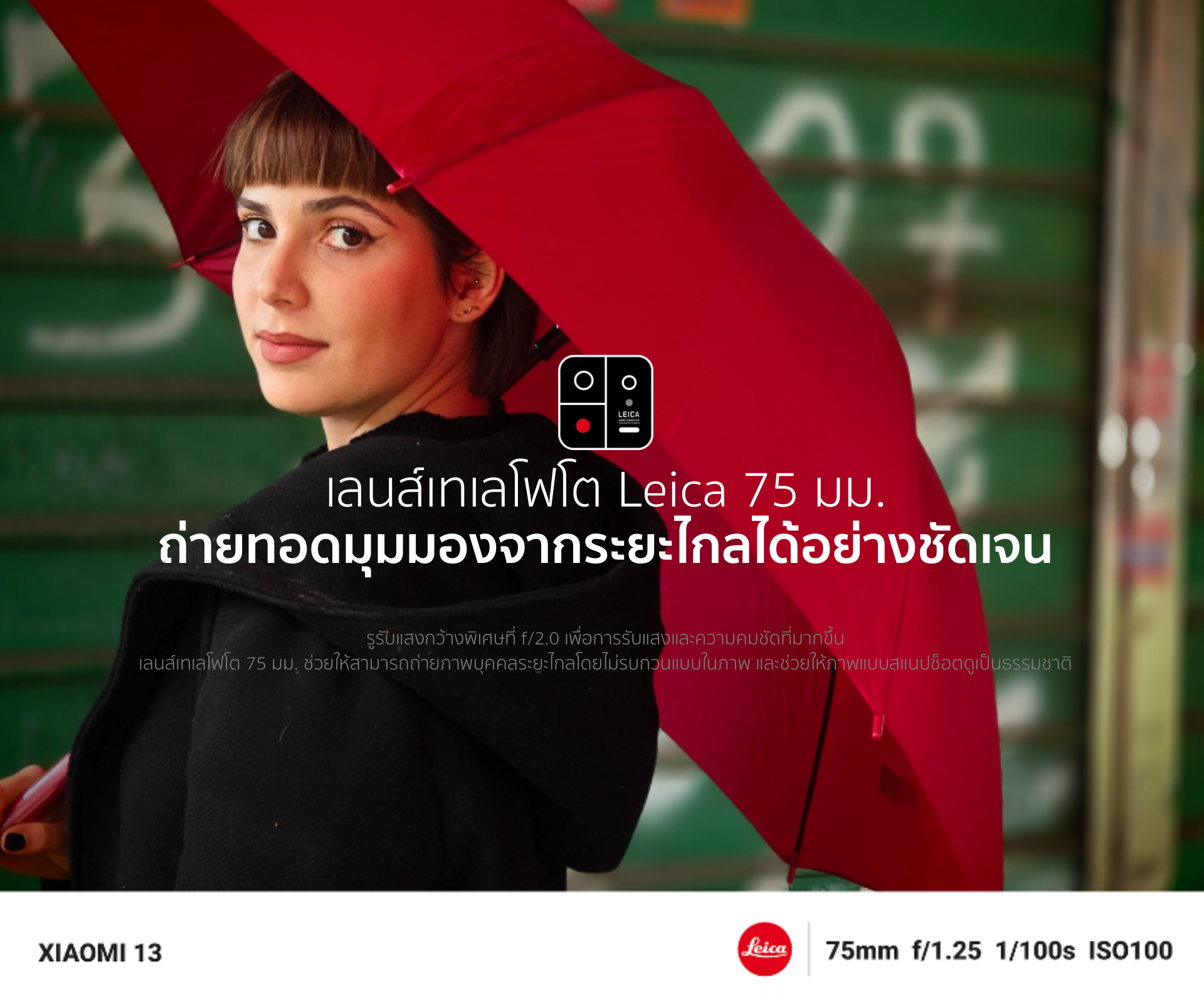 เลนส​์เทเลโฟโต้Leica 75 มม. ความละเอียด 10MP (f/2.0) ถ่ายภาพบุคคลระยะไกลได้ชัดเจนและเป็นธรรมชาติมากขึ้น