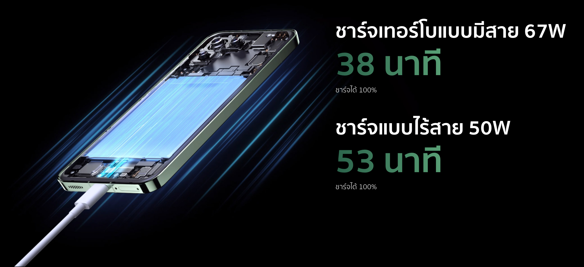 • แบต 4,820 mAh รองรับชาร์จไว มีสาย 120W, ไร้สาย 50W