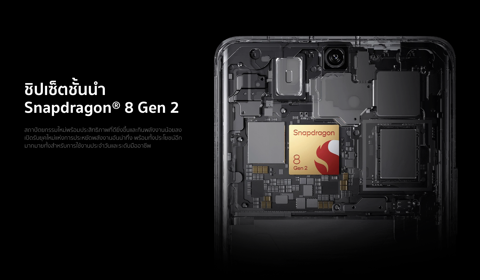 Xiaomi 13 Pro มาพร้อมชิป Snapdragon 8 Gen 2 ประสิทธิภาพการทำงานของ CPU เร็วขึ้นกว่ารุ่นก่อนหน้า 37% และ GPU เร็วขึ้น 42% โอนถ่ายข้อมูลได้เร็วด้วย RAM แบบ LPDDR5X และ ROM แบบ UFS 4.0 อ่านข้อมูลได้เร็วสูงสุดที่ 3.5GB/s