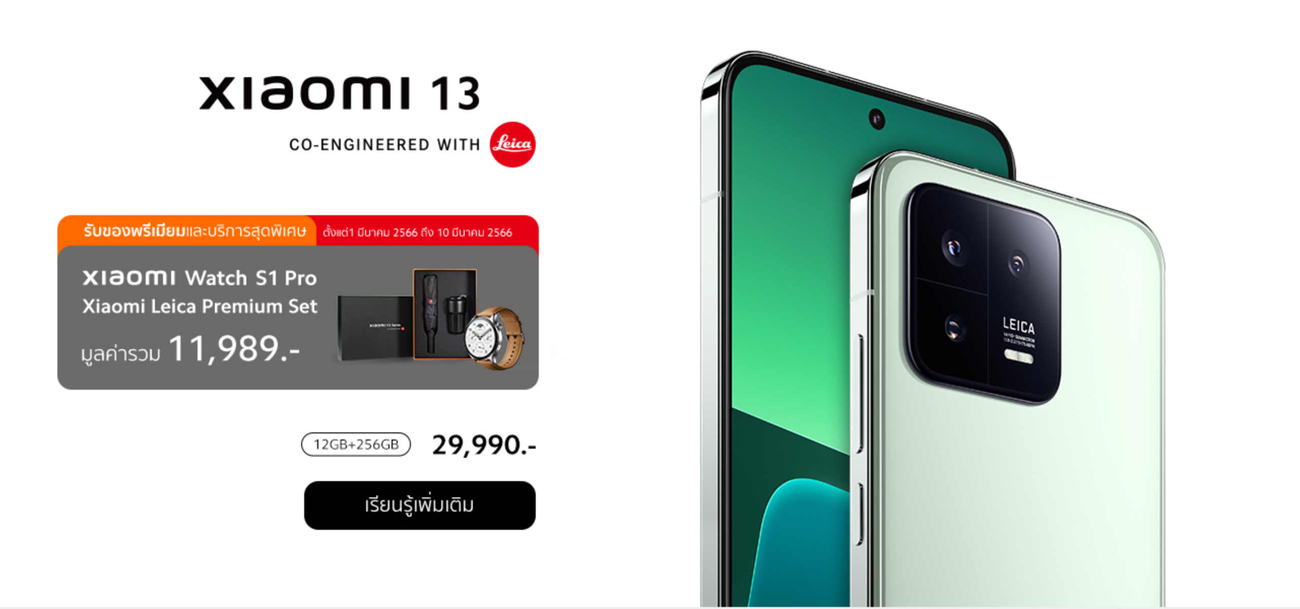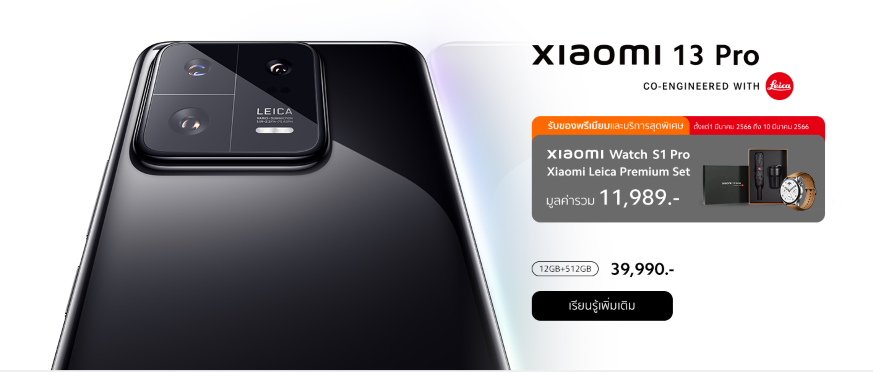 Xiaomi ประกาศพรีออเดอร์ตั้งแต่วันที่ 1-10 มี.ค. 66 ที่หน้าเว็บไซต์ mi.com/th พร้อมโปรโมชันสุดพิเศษสำหรับลูกค้าที่พรีออเดอร์ในวันดังกล่าวจะได้รับฟรี Xiaomi Watch S1 Pro และ Xiaomi Leica