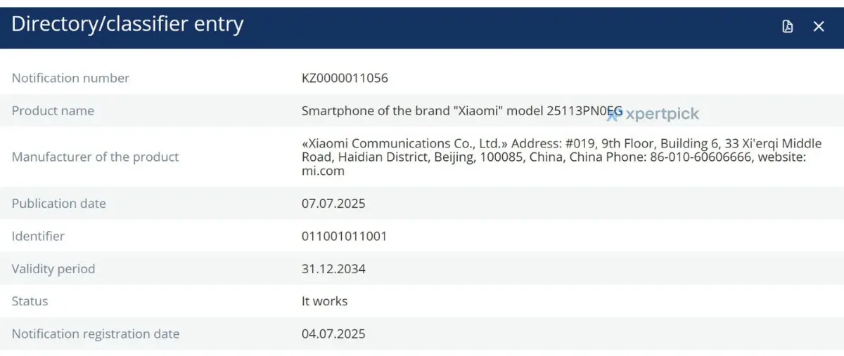 การรับรองดังกล่าวเผยให้เห็นหมายเลขรุ่นของ Xiaomi 16 สำหรับตลาดโลก คือ 25113PN0EG โดยรุ่นสำหรับประเทศจีนจะใช้ตัวอักษร “C” ต่อท้ายแทน “G” และรุ่นสำหรับตลาดอินเดีย ก็เดาได้ไม่ยาก ว่าจะลงท้ายด้วย “I”