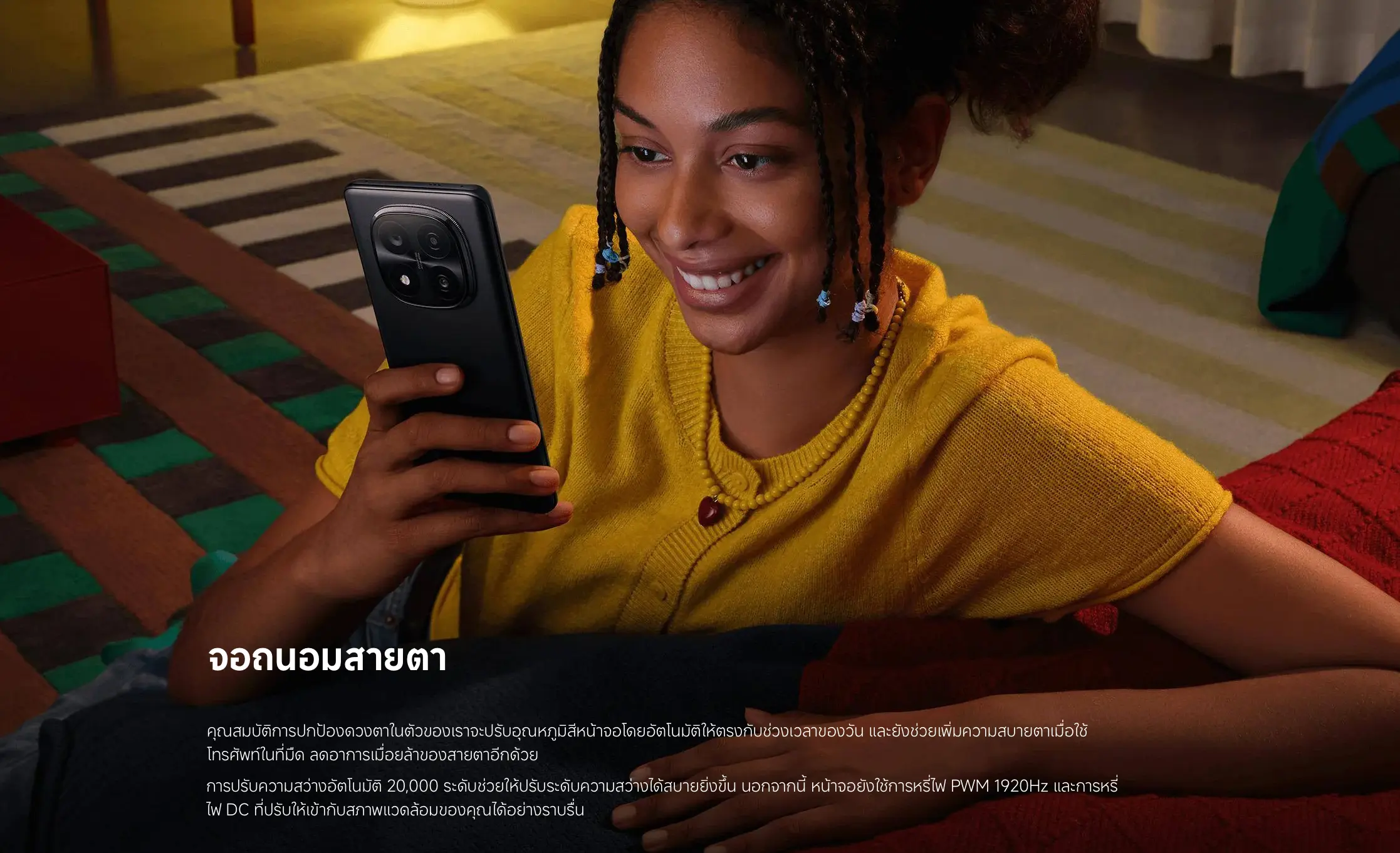 Redmi Note 14 Series ทุกรุ่นมีเทคโนโลยีถนอมสายตา ป้องกันแสงสีฟ้าด้วยการรับรองจาก TÜV Rheinland Low Blue Light (ฮาร์ดแวร์โซลูชัน), การปราศจากการกระพริบ (Flicker Free) การเป็นมิตรทางชีวภาพตลอดทั้งวันกับผู้ใช้งาน (Circadian Friendly)