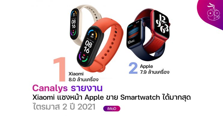 Canalys รายงานว่าไตรมาส 2 ปี 2021 Xiaomi แซงหน้า Apple ขาย Smartwatch ได้มากที่สุดในตลาด Smartwatch แบบทั่วไป ส่วนตลาดแบบพรีเมียม, Apple ยังขายได้มากสุดอยู่