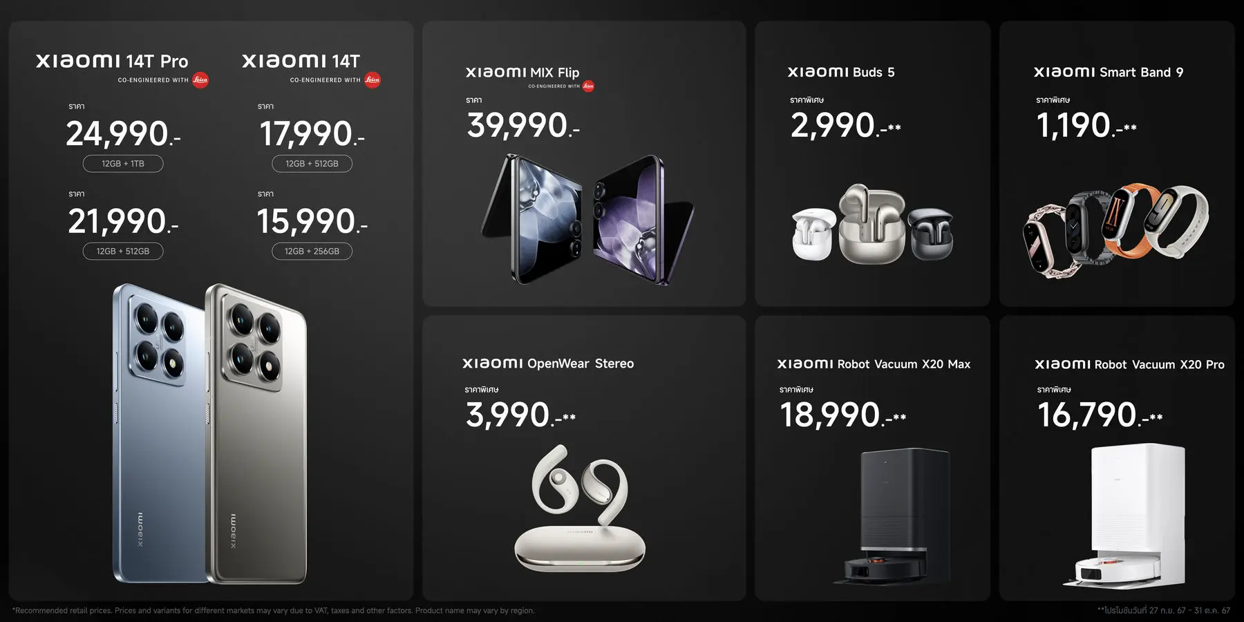 เสียวหมี่ เปิดตัว Xiaomi 14T Series อย่างเป็นทางการในประเทศไทย ชูคอนเซ็ปต์ Master light, capture night เสริมประสิทธิภาพด้วยเทคโนโลยี Advanced AI พร้อมวางจำหน่ายสมาร์ทโฟนจอพับ Xiaomi MIX Flip และผลิตภัณฑ์ AIoT อื่น ๆ อีกมากมาย
