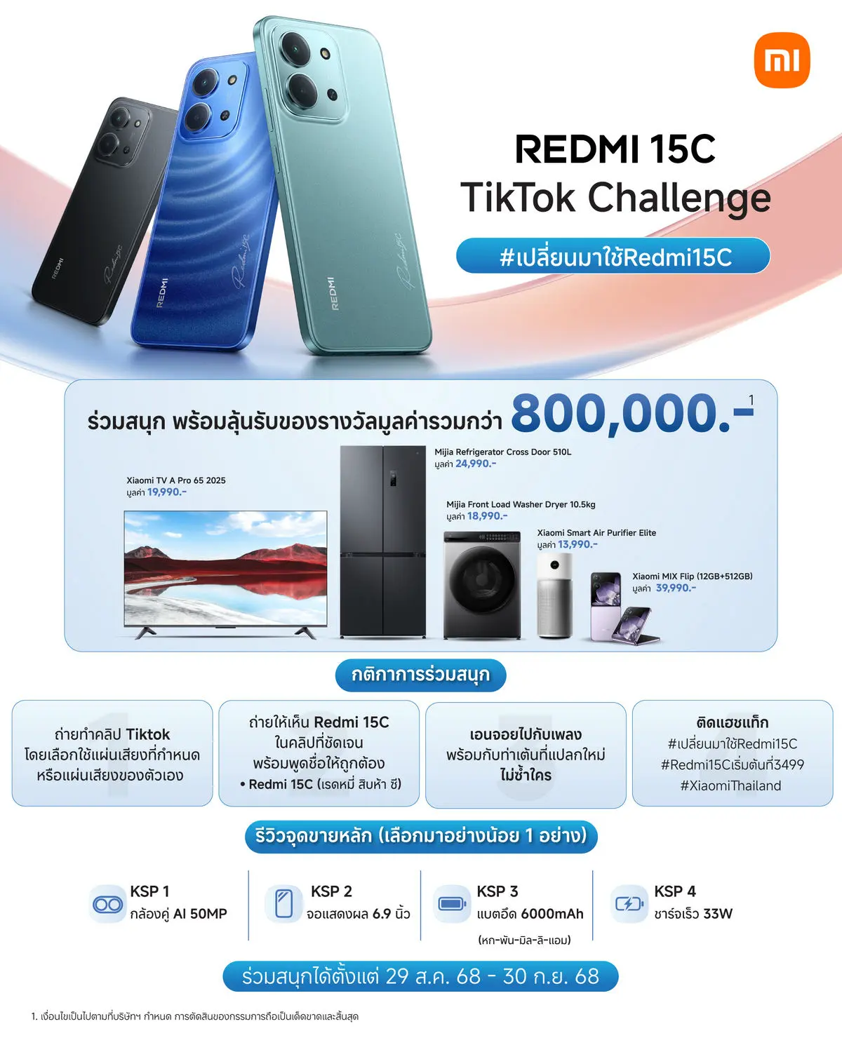 Xiaomi: เสียวหมี่ประเทศไทยวางจำหน่าย Redmi 15C เริ่มต้นที่ 3,499 บาท