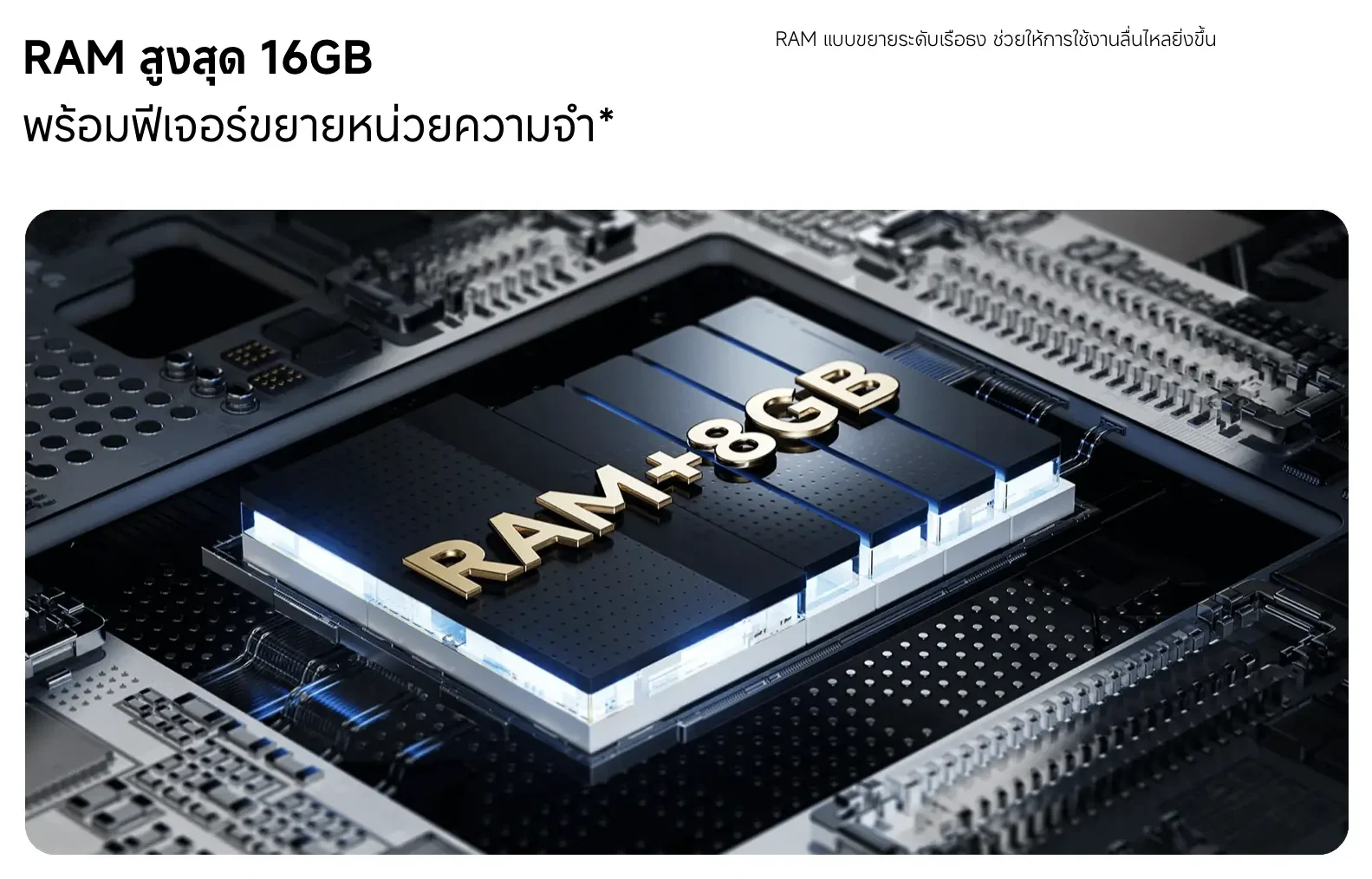 งตามรุ่น RAM 8GB การเพิ่ม RAM จะใช้พื้นที่เก็บข้อมูล ROM ตามปริมาณที่เหมาะสม ส่วนขยายหน่วยความจำจะใช้งานได้ เฉพาะเมื่ออุปกรณ์ของคุณมีพื้ นที่เก็บข้อมูลเพียงพอเท่านั้น การขยายความจุ RAM จริงจะแตกต่างกันไปในแต่ละรุ่น - การ์ด microSD สำหรับพื้นที่เก็บข้อมู