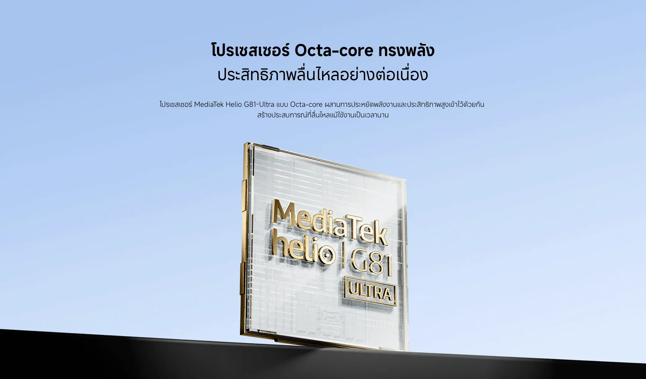 ด้านสเปค: ขับเคลื่อนด้วยโปรเซสเซอร์ MediaTek Helio G81-Ultra ทั้งยังสารมารถขยาย RAM สูงสุดได้ 16GB ผ่านส่วนขยายหน่วยความจำ และรองรับพื้นที่จัดเก็บข้อมู