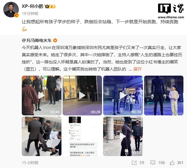 ก่อนหน้า นี้ IRON ก็ได้รับความสนใจมาก เพราะ การเคลื่อนไหวที่เบาราวกับเดินแคทวอล์ก เหมือนไม่ใช่การเดินของหุ่นยนต์ รองประธานของ Xpeng จึงกล่าวว่า การล้มนี้ช่วยคลายข้อสงสัยว่ามีมนุษย์ควบคุมเจ้าหุ่นยนต์ตัวนี้ได้