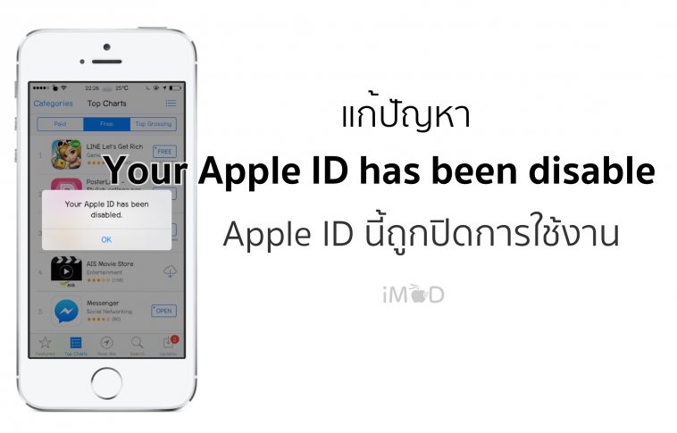 แก้ปัญหา Your Apple ID has been disabled นี้ถูกปิดการใช้งาน