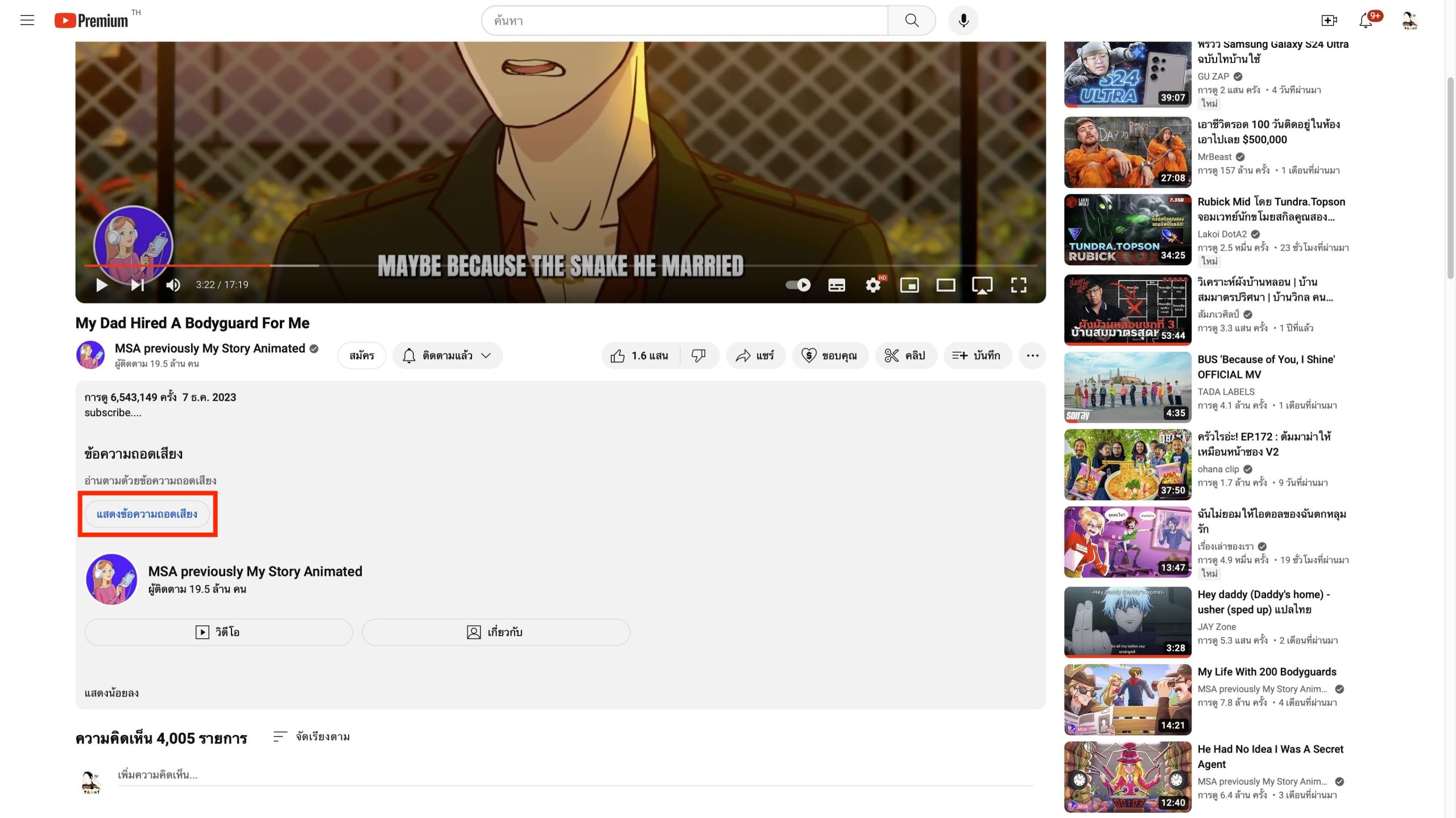 จากนั้นพอเลื่อนลงมาให้กด “แสดงข้อความถอดเสียง”