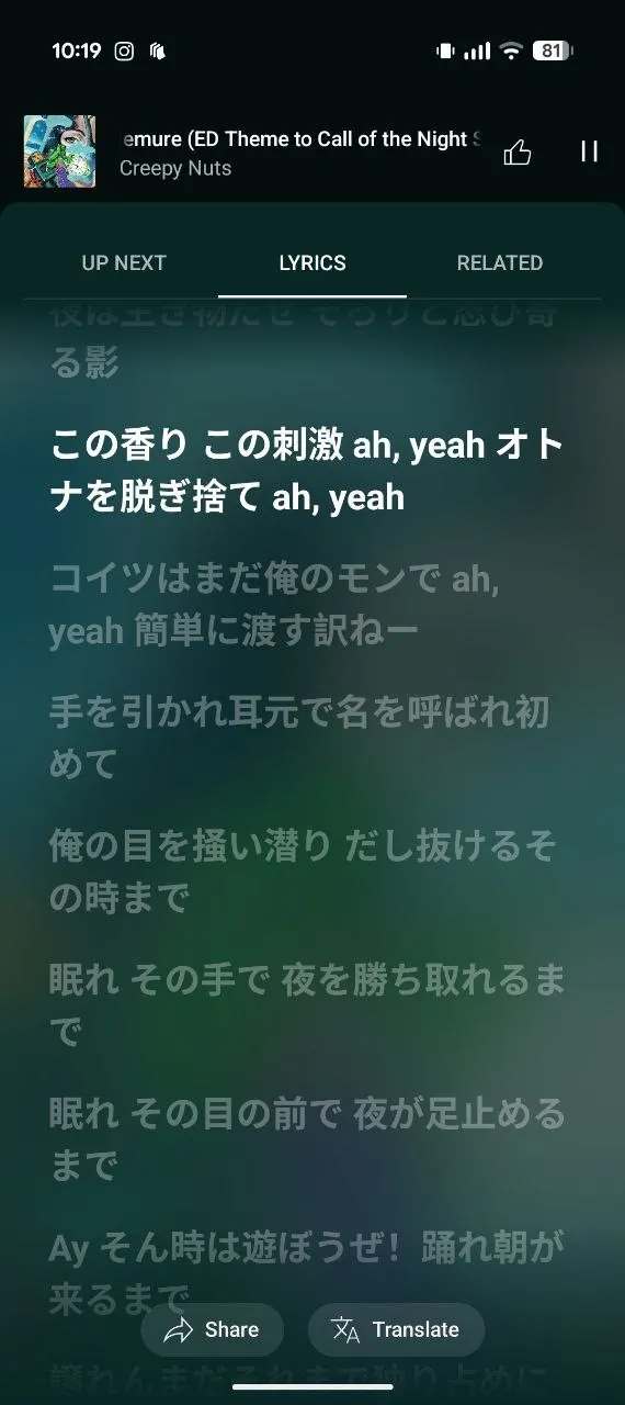 ดูเหมือนว่าขณะนี้ยังคงเป็นการทดสอบที่จำกัดมาก แต่ผู้ใช้ YouTube Music ชื่อ Diego บน Telegram สังเกตเห็นตัวเลือกใหม่ “แปลภาษา” ปรากฏขึ้นในหน้าดูเนื้อเพลง การเลือกตัวเลือกนี้ คาดว่าจะเป็นการสร้างการแปลเนื้อเพลงด้วย AI ซึ่งจะแสดงอยู่ใต้เนื้อเพลงต้นฉบับ