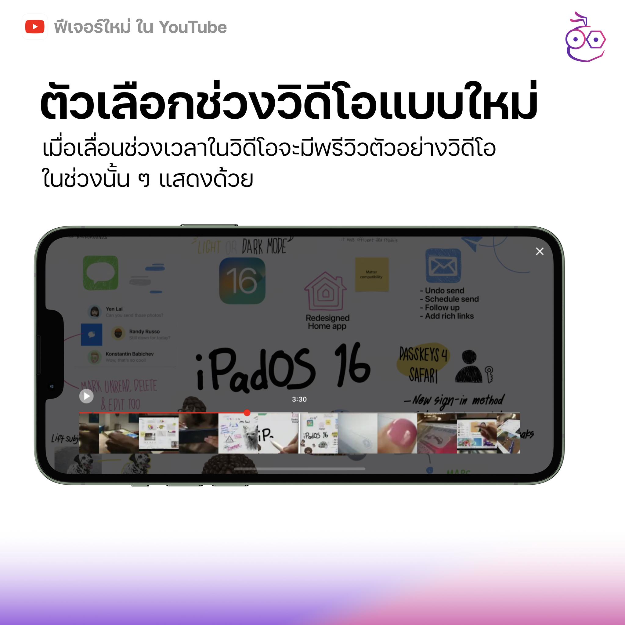 เมื่อเราเลื่อนช่วงเวลาในวีดีโอ การอัปเดตใหม่จะแสดงพรีวิวตัวอย่างวีดีโอในช่วงนั้น ๆ ขึ้นมาให้เราเห็นด้วย