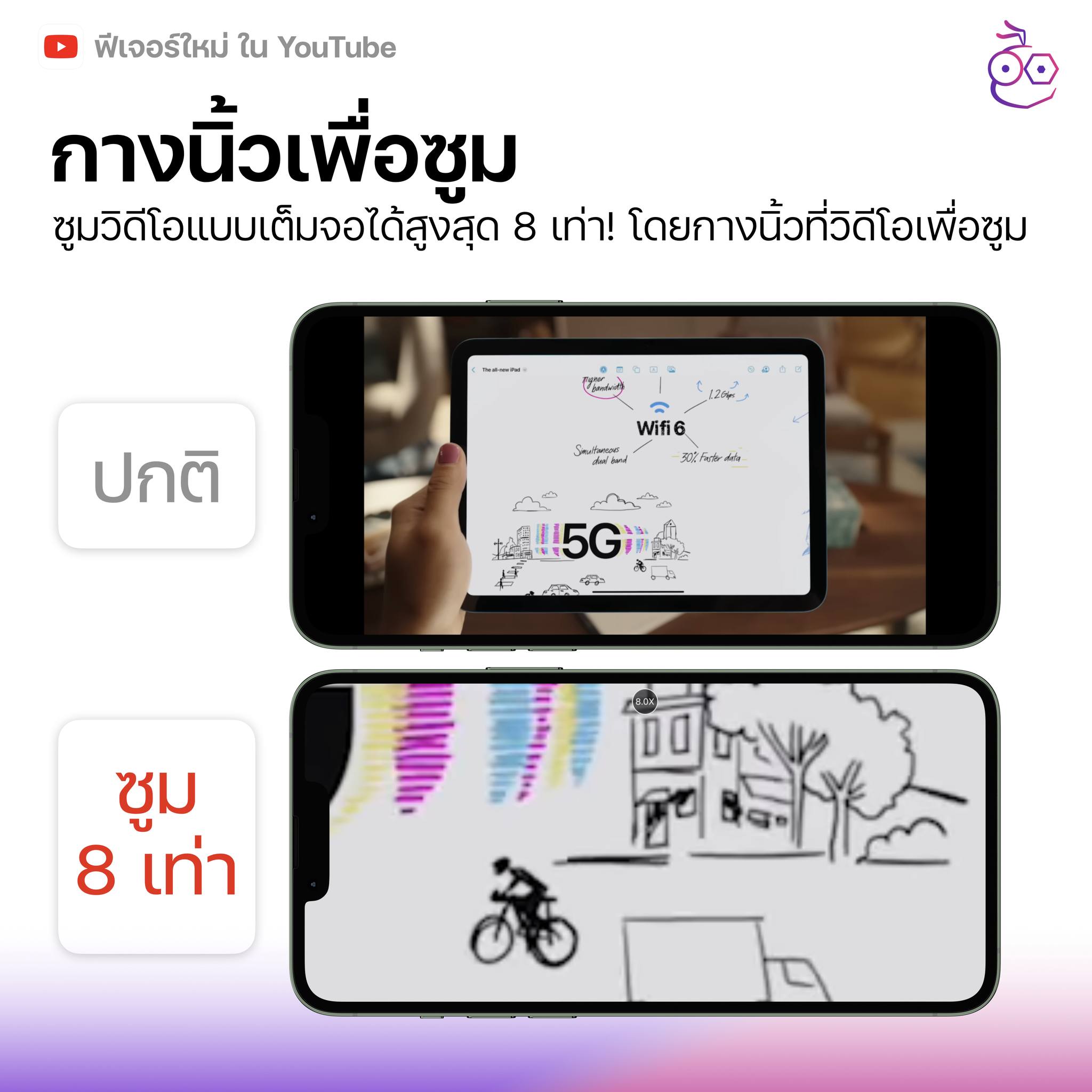สามารถใช้ 2 นิ้วในการซูมวีดีโอแบบเต็มจอ เข้าไปได้สูงสุด 8 เท่า เพื่อดูรายละเอียดต่างๆ ไม่ว่าจะเป้น ข้อความ, ป้ายร้านค้า, รายละเอียดเล็กๆน้อยๆ (วีดีโอขนาด 4k การซูมจะเห็นรายที่ชัดเจนมากกว่า ความละเอียดอื่นที่ลดลงมา)