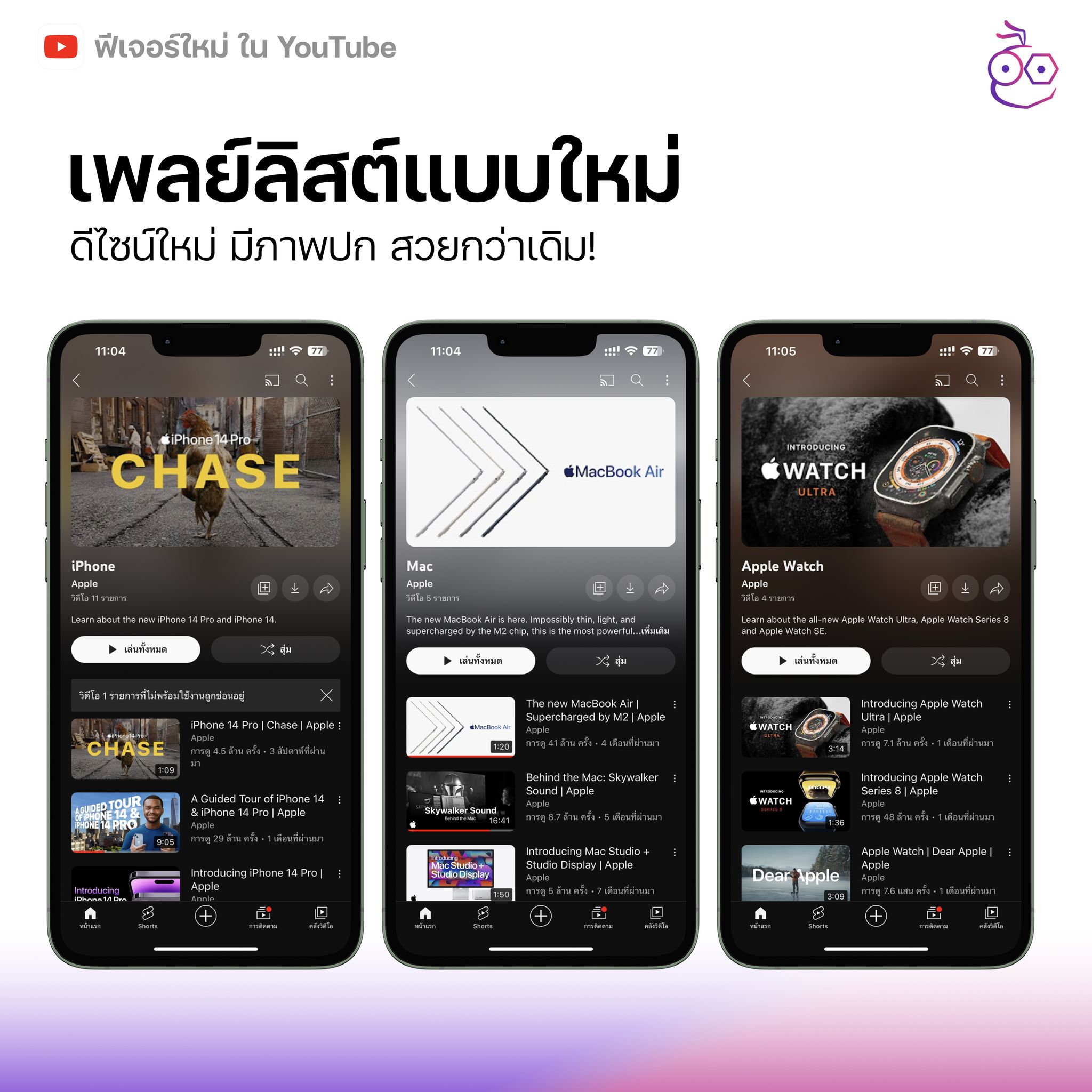 27 ตุลาคม 2565, หลายๆคนคงสังเกตุกันว่า Youtube นั้นมีการปรับเปลี่ยนหน้าตาการใช้งาน ไม่ว่าจะบนเว็บเบราเซอร์ หรือ แอปพลิเคชันผ่านโทรศัพท์มือถือ และมีฟฟีเจอร์หลายตัวเข้ามาให้เราใช้งานเลย ไม่ว่าจะเป็น