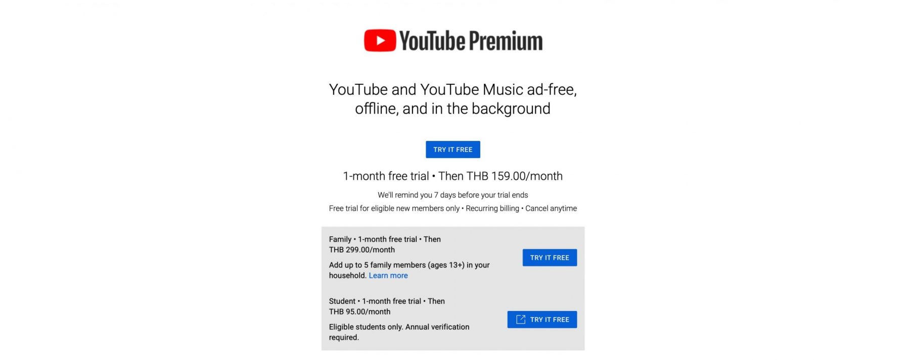 ราคาการสมัครรับ YouTube Premium แพ็กเก็จอื่น ๆ เช่น แผนแบบรับชมคนเดียว หรือแผนแบบ Student ยังคงเป็นราคาเดิม ถ้าต้องการจะพักหรือยกเลิกการสมัครรับสมาชิกแบบ Premium สามารถเข้าไปกดยกเลิกได้ที่ youtube.com/paid_memberships