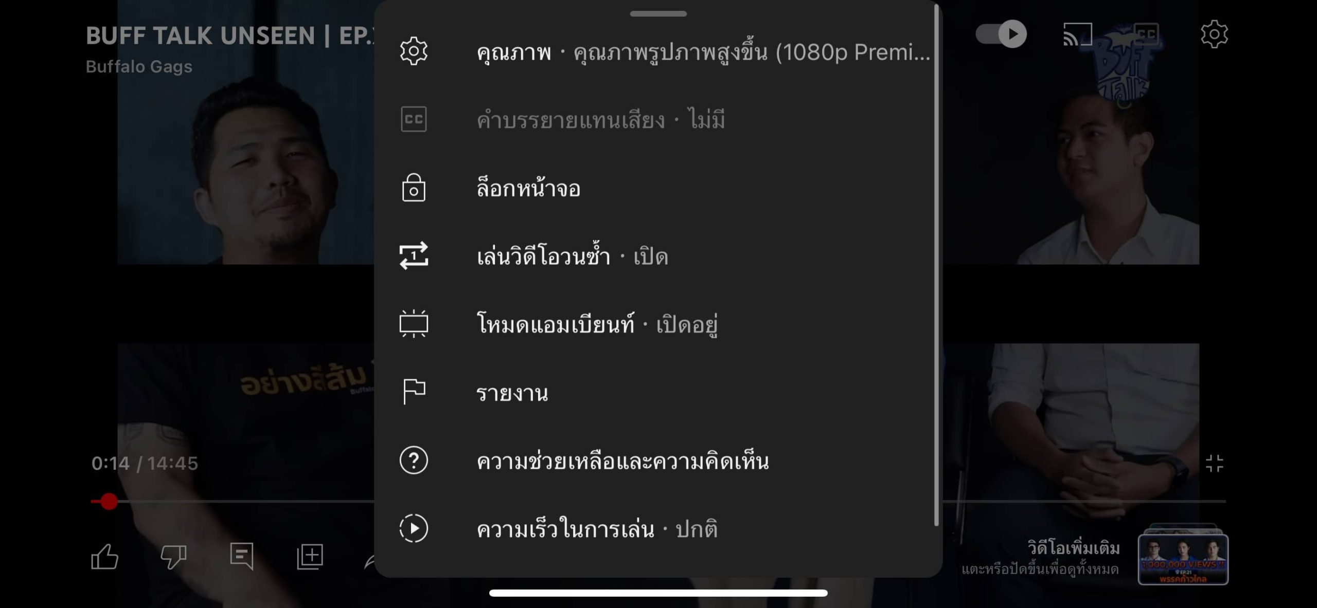 โดย Youtube Premium จะให้เราเลือกทดลองใช้ได้ทีละฟีเจอร์เท่านั้น ถ้าต้องการทดลองฟีเจอร์อื่น ๆ ต้องกด “ปิด” อันเดิมก่อน ถึงจะทดลองอันใหม่ได้