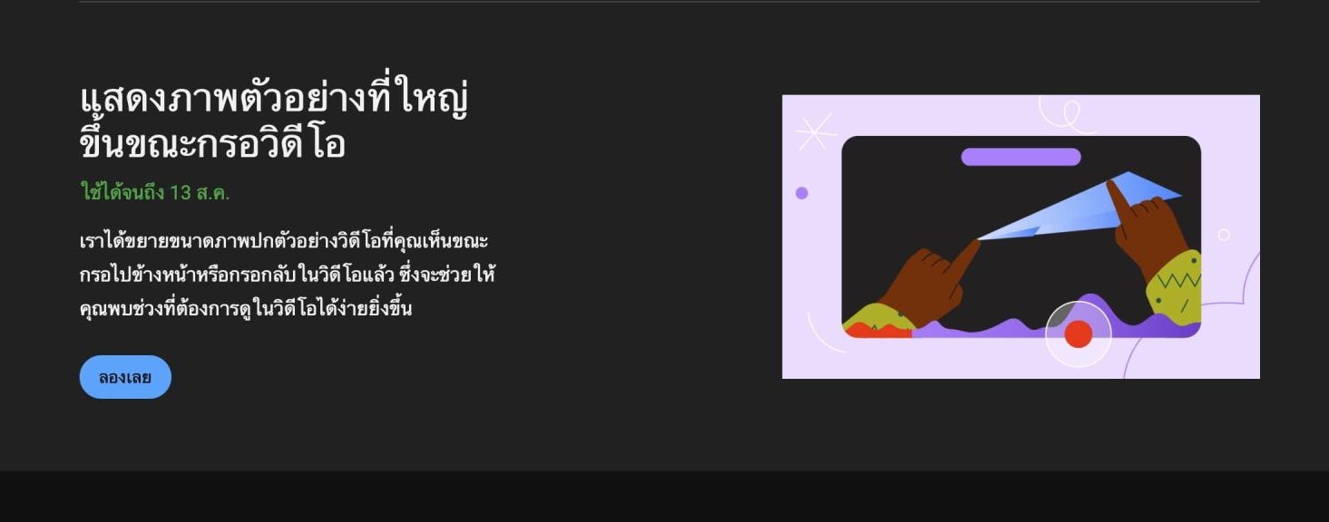 ฟีเจอร์แสดงภาพตัวอย่างที่ใหญ่ขึ้นขณะกรอวิดีโอ