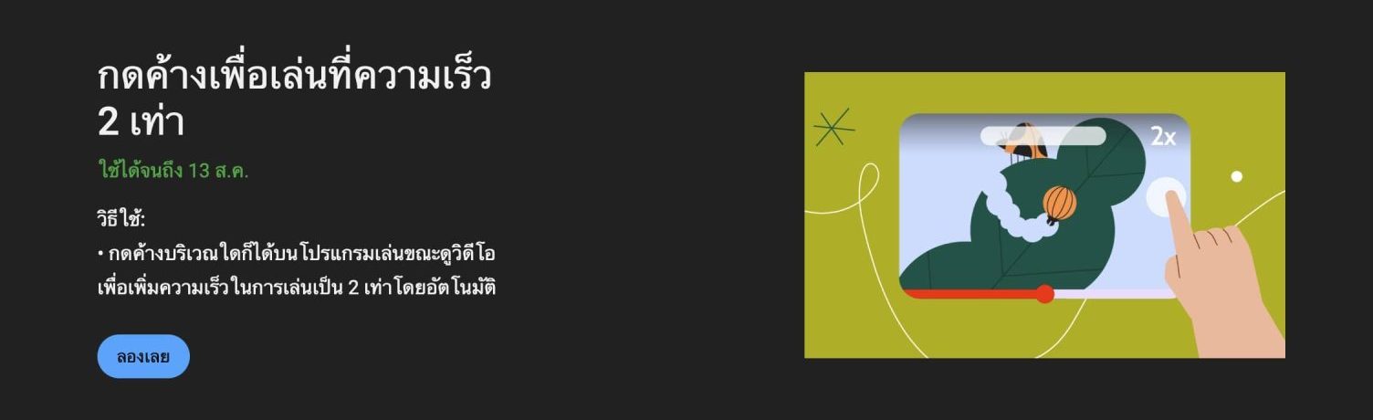 ฟีเจอร์กดค้างเพื่อเล่นที่ความเร็ว 2 เท่า