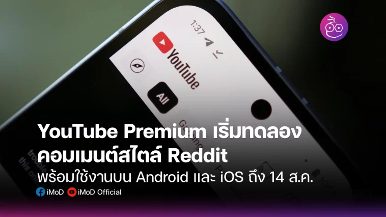 YouTube Premium เริ่มทดลองคอมเมนต์สไตล์ Reddit