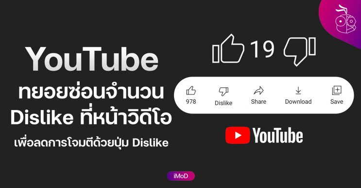 YouTube ประกาศอย่างเป็นทางการว่าจะทยอยซ่อนจำนวน “Dislike” (ไม่ชอบ) ที่หน้าวิดีโอแบบสาธารณะ เพื่อลดการโจมตีครีเอเตอร์ด้วยปุ่ม Dislike โดยครีเอเตอร์สามารถดูจำนวน Dislike ได้ที่หลังบ้าน