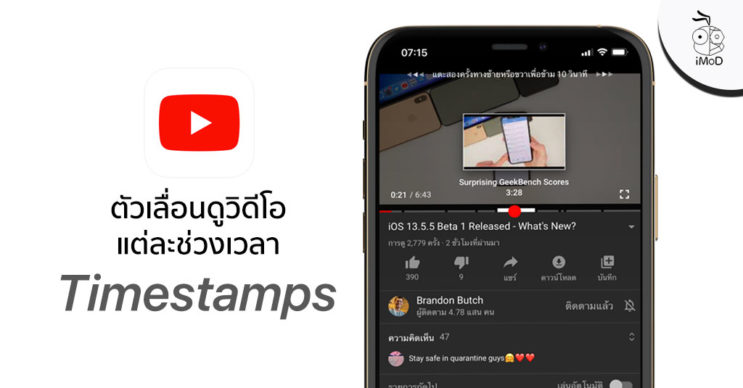 YouTube เพิ่มตัวเลื่อนสำหรับดูวิดีโอแต่ละช่วงเวลา (Timestamp)