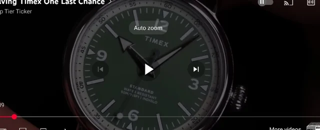 เมื่อเปิดใช้งาน “Zoom to fill screen” จะทำให้วิดีโอเต็มหน้า จอเมื่ออยู่ในโหมดเต็มหน้าจอ แต่ Auto Zoom จะเปิดใช้งานแม้ว่า “Zoom to fill screen” จะถูกปิดในการตั้งค่าและไม่ได้เปิดใช้งานกับทุกวิดีโอ Auto Zoom จะแสดงปุ่มรูปทรงเม็ดยาขนาดเล็กบนวิดีโอในโหมดแนวนอน