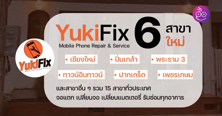 YukiFix เปิด 6 สาขาใหม่ เชียงใหม่ ปิ่นเกล้า พระรามสาม ทาวน์อินทาวน์ ปากเกร็ด และเพชรเกษม