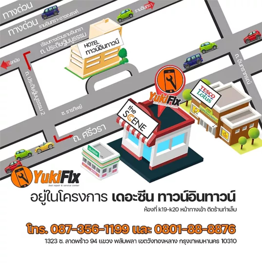 - YukiFix สาขารามคำแหง : โทร 087-3561199 , 080-1888876, 092-3588845, 089-4571116
