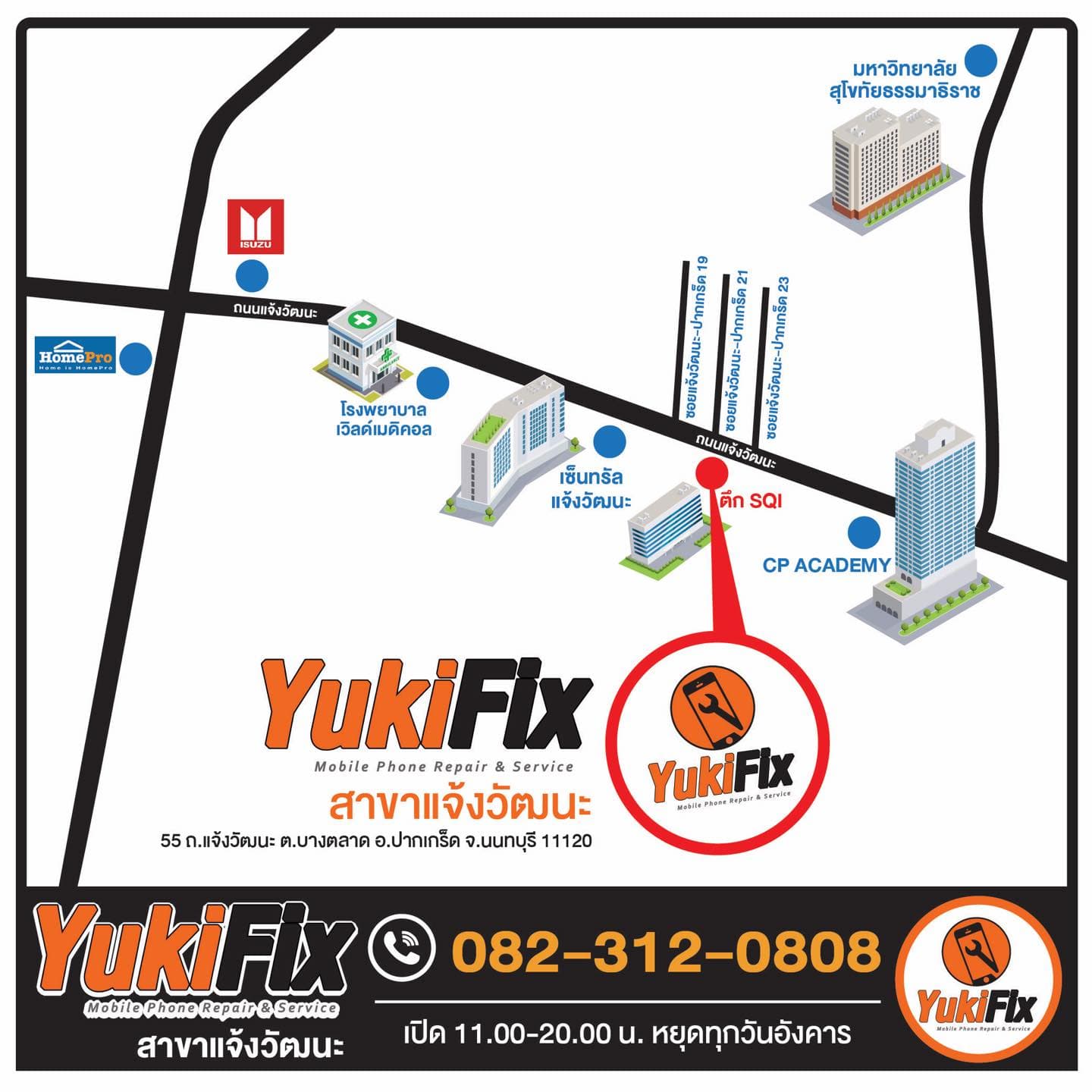 - YukiFix สาขาบางใหญ่ : โทร 082-3120808