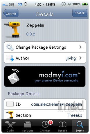- เข้า Cydia ติดตั้ง Zeppelin ถ้าหากไม่เจอจะต้องรอให้ refresh ก่อน