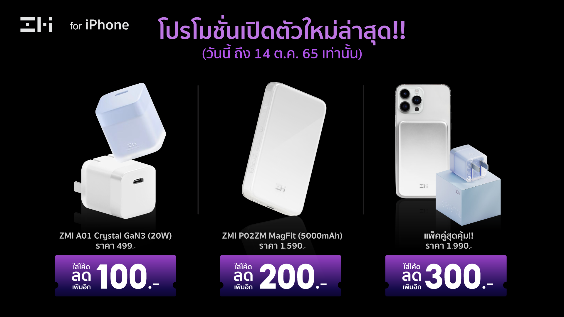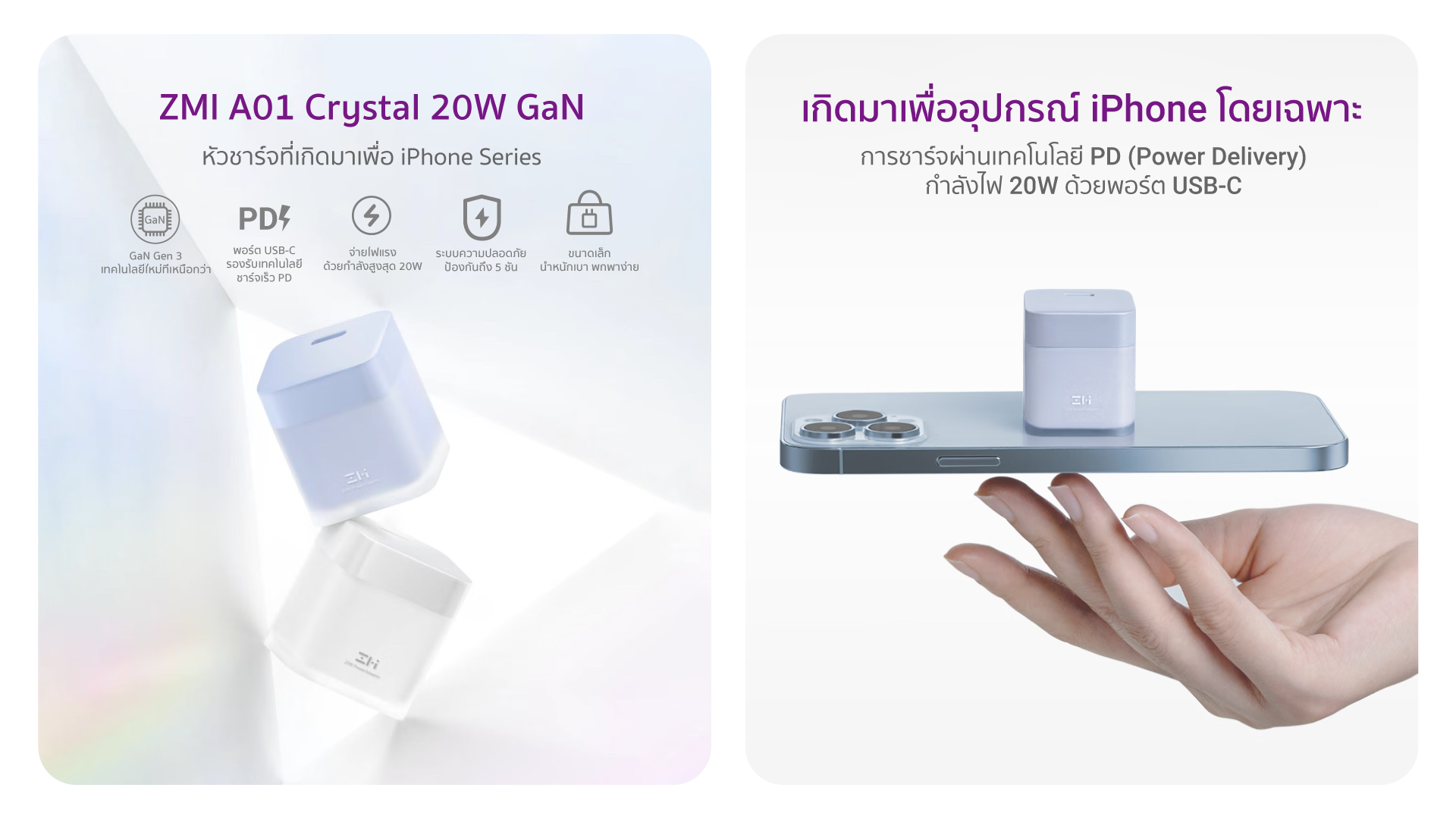 ZMI เปิดตัว Premium Series สำหรับ iPhone 14 , ZMI A01 Crystal หัวชาร์จไฟ ขนาดเล็ก พับเก็บได้ พร้อมเทคโนโลยี GaN3 ควบคุมอุณหภูมิได้ดี และ ZMI P02ZM MagFit แบตฯสำรอง MagSafe ดีไซน์สวย เบาบาง ความจุกว่า 5,000mAh