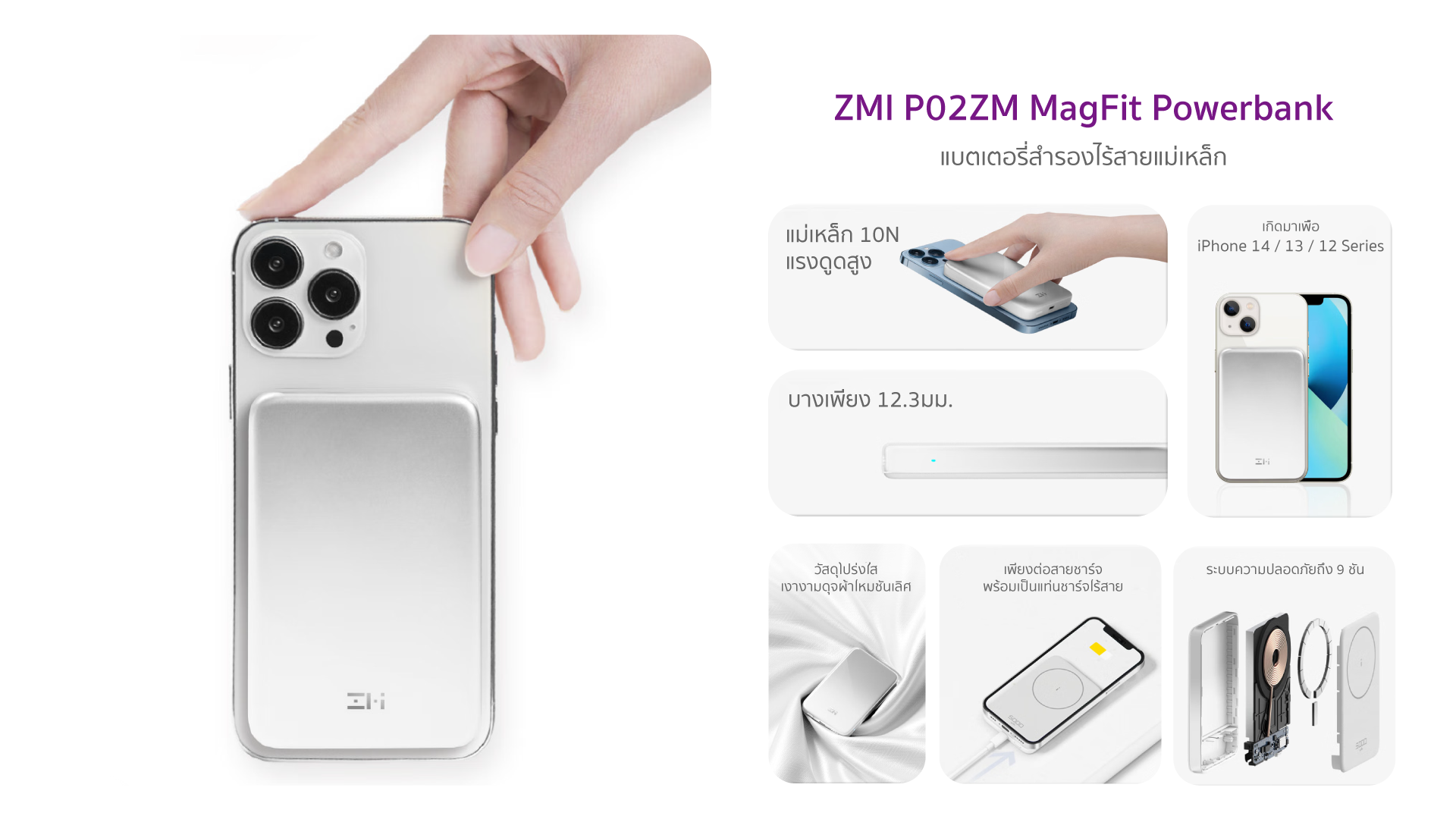 และนอกจากนี้ที่เน้นย้ำการเกิดมาเพื่อ iPhone14 กว่าเดิมด้วย ZMI P02ZM MagFit แบตสำรองชาร์จไร้สายแบบแม่เหล็ก ที่ออกแบบอย่างจริงจัง สวยงาม ลงตัว พอดีทุกองศาเมื่อใช้งานร่วมกับ iPhone ของคุณ
