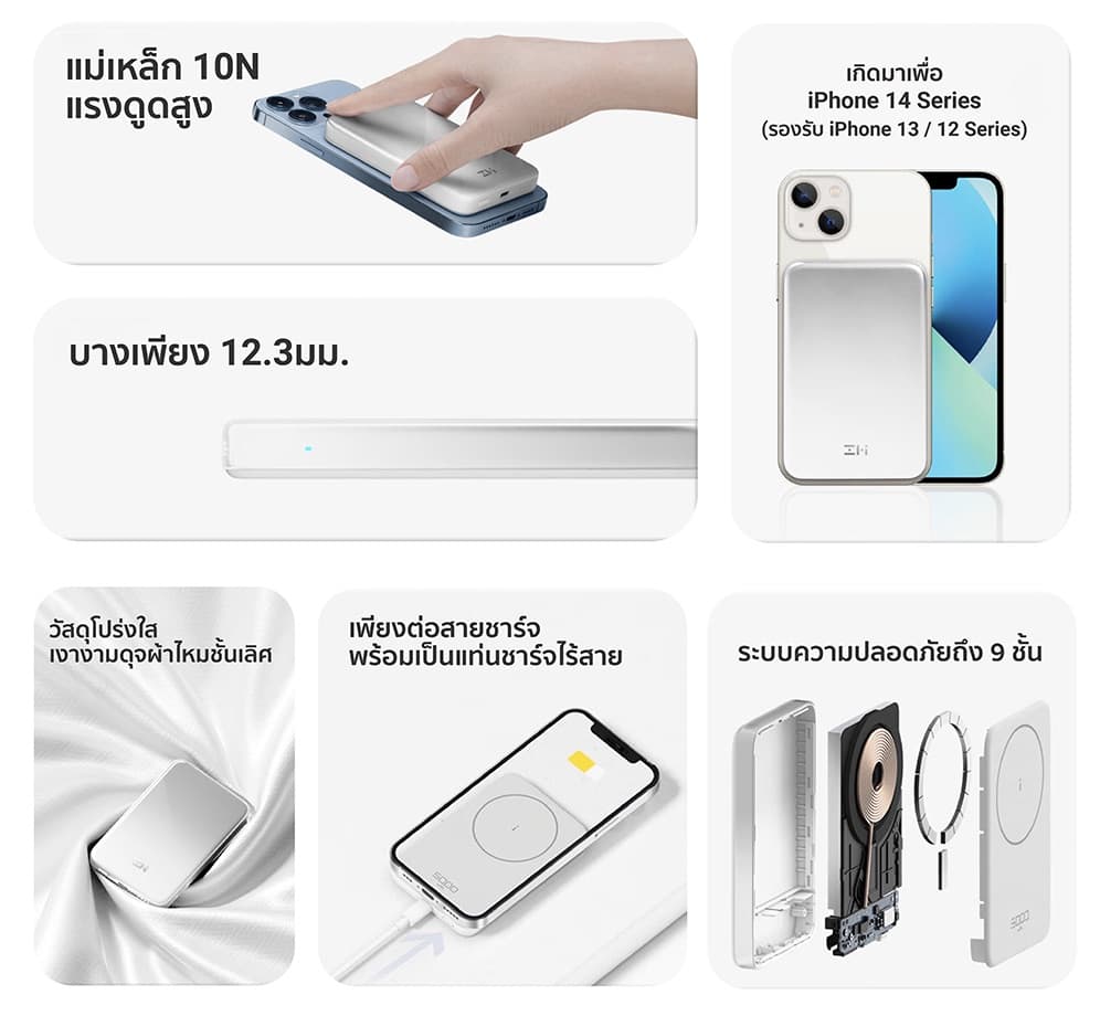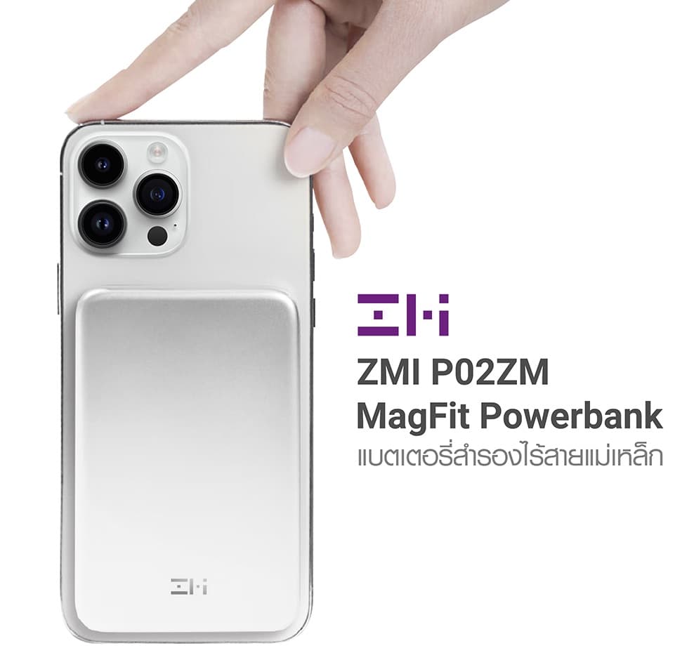 𝐙𝐌𝐈 𝐏𝟎𝟐𝐙𝐌 𝐌𝐚𝐠𝐟𝐢𝐭 แบตสำรองไร้สายแม่เหล็ก (MagSafe) พลังดูด 10N สูงกว่าแบรนด์ทั่วไป พื้นสัมผัสด้านในลายหนังเทียม ป้องกันรอยที่จะเกิดกับโทรศัพท์ สามารถชาร์จขณะใส่เคสได้อย่างสบาย ๆ