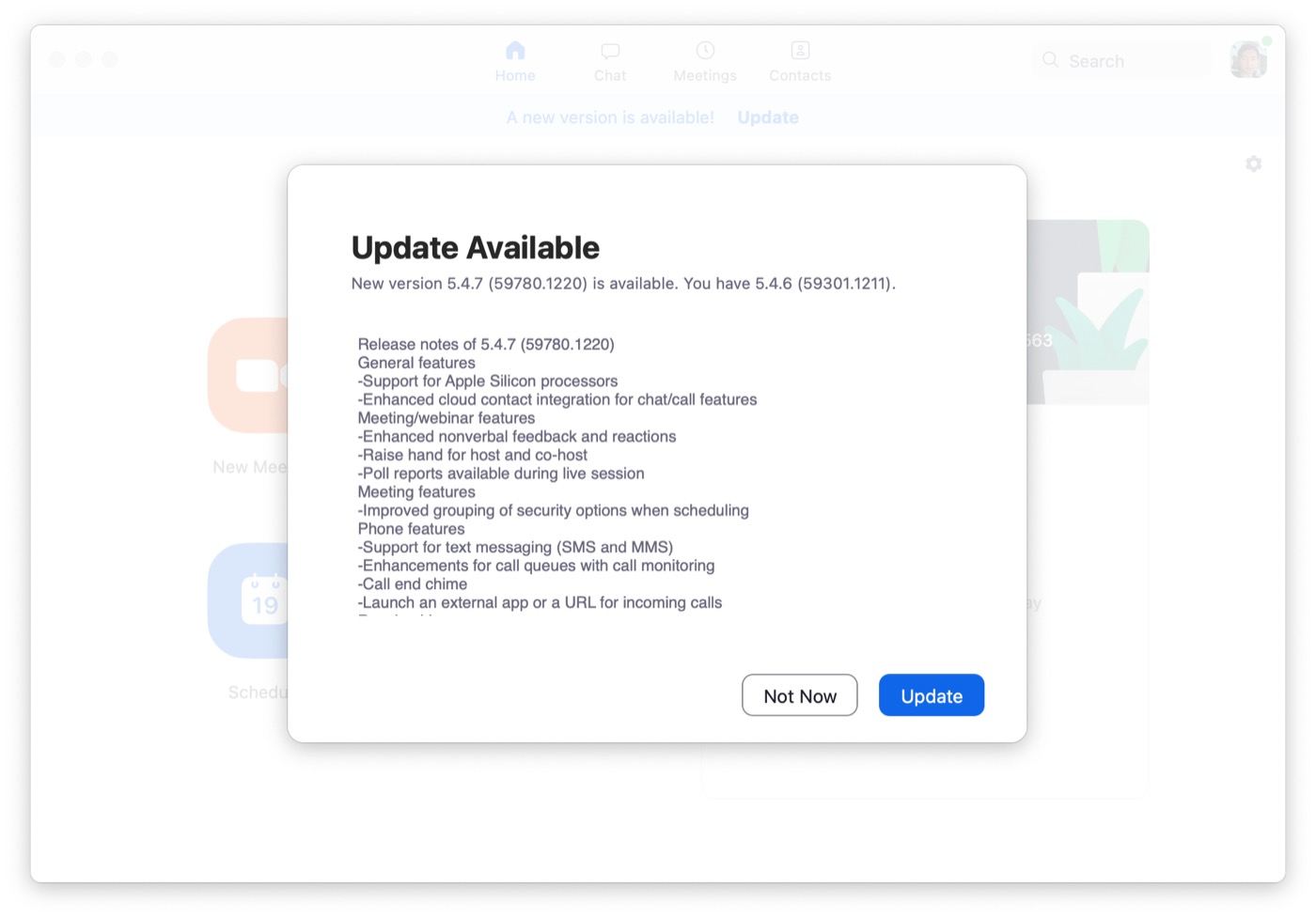 22 ธันวาคม 2563 ทางแอป Zoom ปล่อยอัปเดตเวอร์ชัน 5.4.7 รองรับการทำงานร่วมกับ Mac รุ่นที่ใช้ชิป M1 เป็นที่เรียบร้อยแล้ว