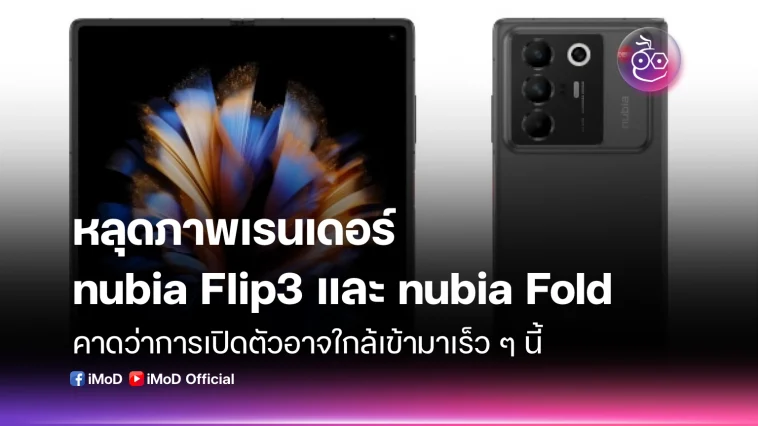 ZTE เตรียมเปิดตัวสมาร์ตโฟนพับได้รุ่นใหม่ โดยมีภาพเรนเดอร์หลุดของ nubia Flip3 และ nubia Fold ซึ่งเป็นรุ่นแบบพับแนวนอนและแนวตั้งตามลำดับ